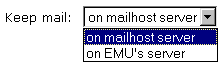 Selecting "on EMU's server" means that EMU Webmail will transfer all your messages to the EMU Webmail server and erase them from the server where your account exists. They will be kept on EMU Webmail's servers and not on your account's server. The benefit of this is that the process of checking for new email is much faster, because EMU Webmail must only check for the new messages on your account's server. It does not need to download all the messages every time you check email through EMU Webmail. However, with this option, you will only be able to access your saved or already read email through EMU Webmail. You will still be able to access new email with any other program or service (before it is transferred over with EMU Webmail). It is highly unadvisable to switch between these two options. Please select one and use it. |