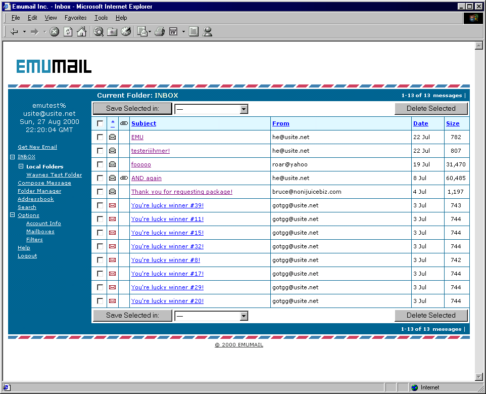 Clicking on "Get New Email" checks for any new mail and returns you to the contents of whatever folder you are in. EMU Webmail also automatically checks for new email every 5 minutes. This is an option that can be changed in the Account Information options. |