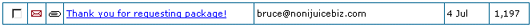 Each message has an image of an envelope. A red, closed envelope denotes an unread email. An opened, black envelope denotes a read email. An opened envelope with the letter A on the flap denotes an answered letter. |