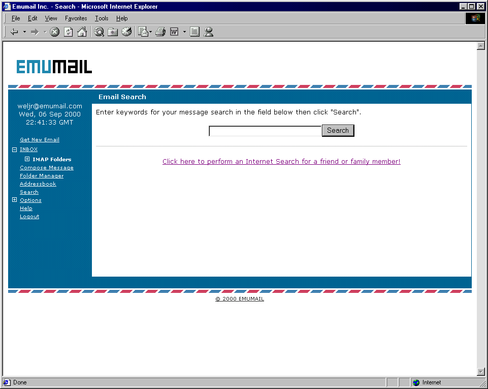 Search sorts through all the messages in your Inbox and folders to see if any of the messages contain what you are searching for. If so, those messages are returned to you. Type in any word or phrase and click "Search". |