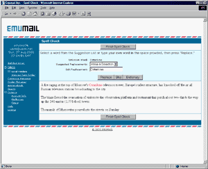 EMU Webmail suggests a series of words which it thinks you may have been trying to type. If you find the word you meant to type, select it. |