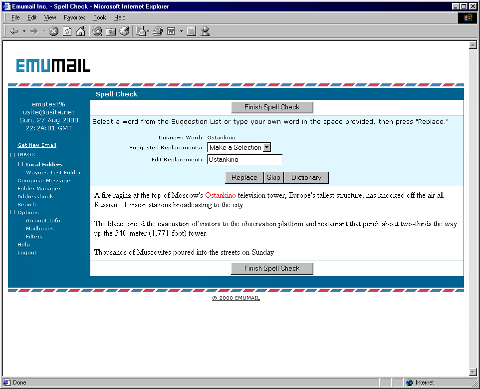 If the word you meant to type is not in the list given by EMU Webmail, type in your own replacement here. |